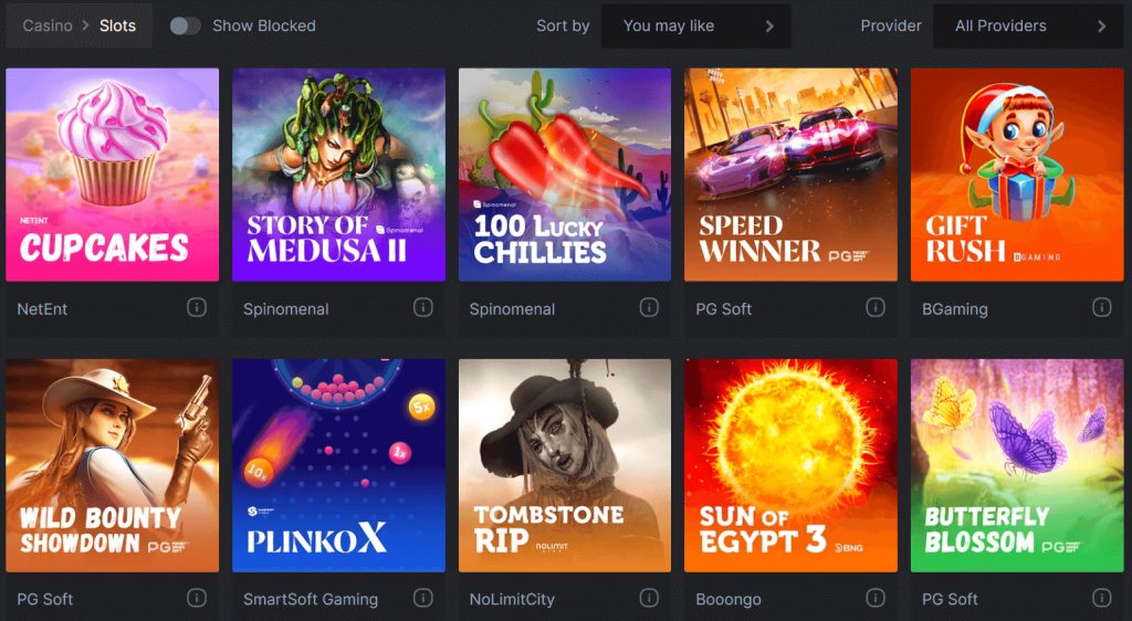 The games included in the library are neatly divided into several categories according to their providers, theme, popularity, and more. You can also use the Search bar to look for a specific game without going through all the games.